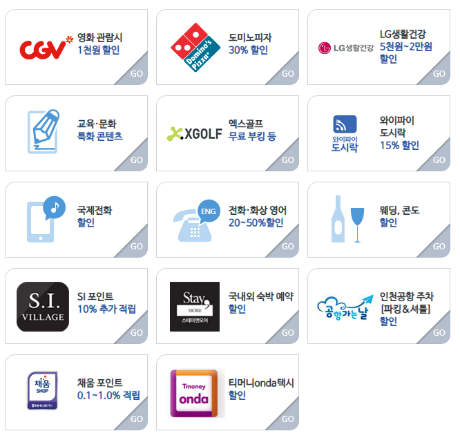커피와 영화/공연, 쇼핑에 대한 할인혜택을 제공하는 카드 정말 많습니다.