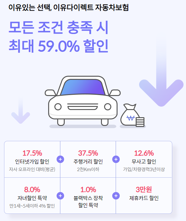 흥국화재 이유다이렉트 자동차보험 할인율 및 카드결제 무이자할부혜택