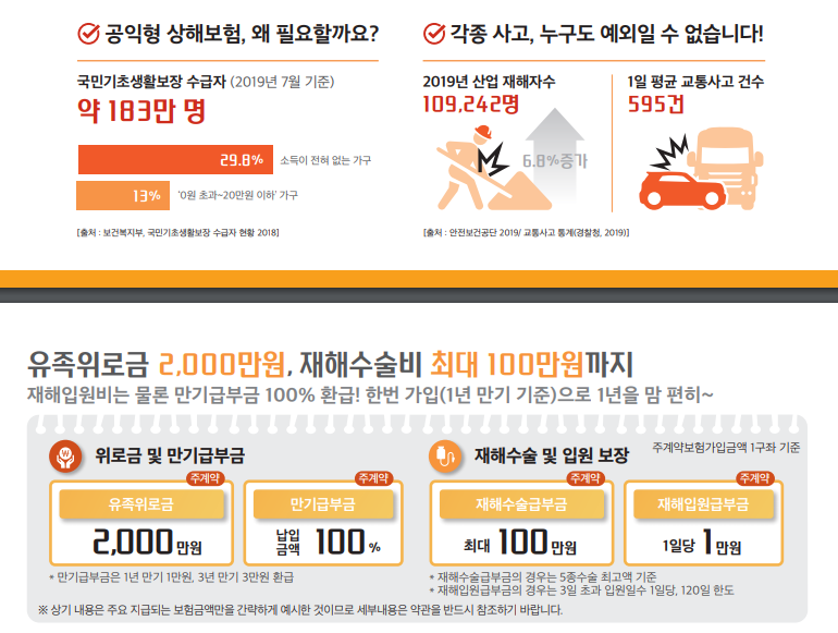 보험기간은 10년, 20년, 80세만기 3가지 중에서 선택이 가능하며, 가입하도는 1천만원&2천만원입니다.