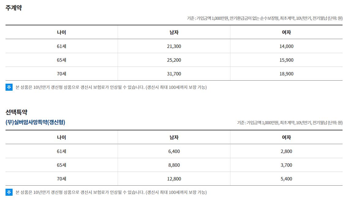 -소구력 높은 건강보장 특약도 함께 가입을 하실 수 있으며, 최대 가입금액이나 특약 가입여부는 성별이나 연령에 따라서 달라질 수 있습니다.