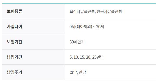 -자녀가 성인이 될때까지 온 가족이 하나의 보험으로 보장을 받으실 수 있는데요. 자녀형 선택특약에 가입하셔야 하며, 최대 가입금액이나 특약가입여부는 성별이나 연령에 따라 달라질 수 있습니다.