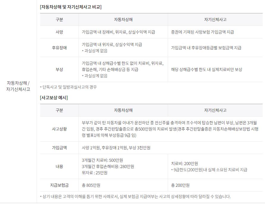 이 부분은 자동차보험에서는 보장을 받으시지 못하는 부분이라서, 차량을 소지하고 계시는 분들이라면 의무가입인 자동차보험과 함께 운전자 보험도 준비를 해두시는게 좋습니다.
