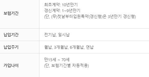 보장기간은 5년, 10년, 15년, 20년만기 중에서 선택을 하실 수 있으며, 전기납 상품입니다.