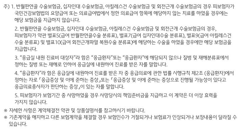 *보존치료는 가입 후 1년이내에는 50%만 지급하는 감액기간을 두고 있습니다.