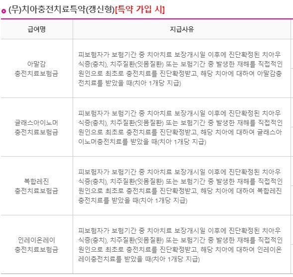 -치아충전치료 20만원, 크라운치료 40만원 가입 기준