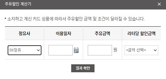 BC SK카드 SK주유소 리터당 25원 할인
