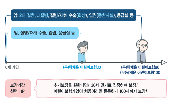 우체국 어깨동무보험은 1종(생활보장형), 2종(암보장형), 3종(상해보장형)으로 구성되어 있으며, 플랜별로 가입연령은 상이하지만, 0세부터 70세까지 가입을 하실 수 있습니다. 1종과 2종은 10년 20년 만기 또는 80세만기 보장설계가 가능하고, 3종은 10년만기입니다.
