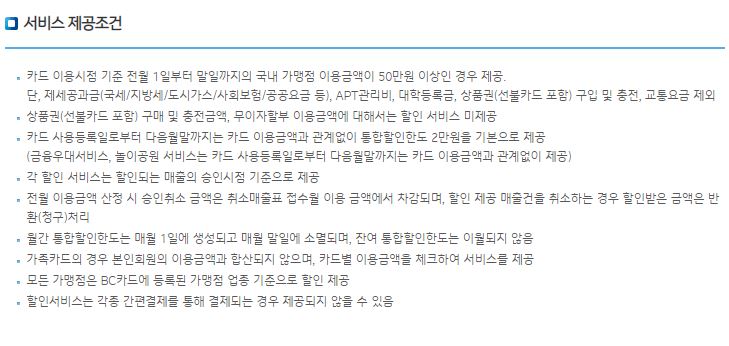 ※ 건당 이용금액 6천원 이상인 경우 서비스가 제공되며, 아파트관리비에 도시가스, 전기요금이 포함되서 청구되는 경우 1건으로 적용됩니다.(이동통신의 경우 약정금액대납, 지점을통한월납, 알뜰폰 제외)