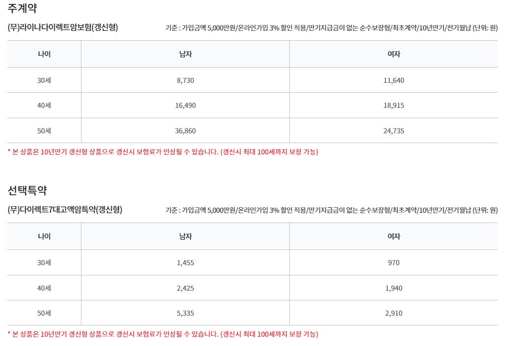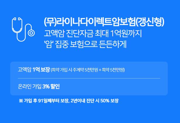1. 라이나생명 다이렉트 암보험 고액암 최대 1억원