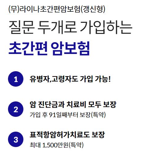 라이나생명 초간편암보험 역시 유병자 및 고령자 분들을 위한 상품으로 질문 두개로 가입하실 수 있는 상품입니다.