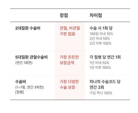 자세한 특약의 종류는 약관을 통해 확인하실 수 있는 만큼, 수술비나 입원일당, 진단비에 대한 보장을 필요하신 분들이라면 가입 전 약관을 통해서 본인의 니즈를 충족할 수 있는지 여부를 확인해 보시기 바랍니다.