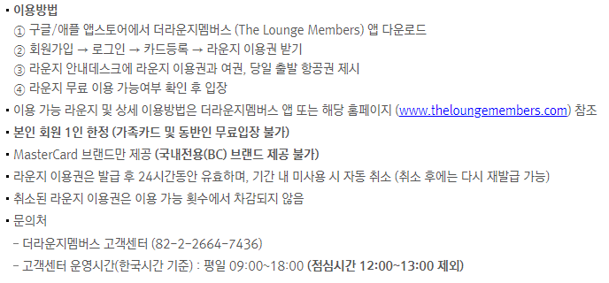 -이용라운지 및 상세이용방법은 더라운지멤버스 앱이나 홈페이지 참초
