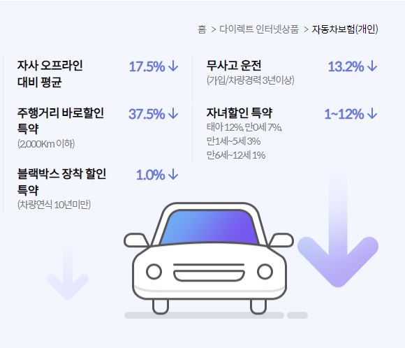 일단 자사 오프라인 대비 평균 17.5%저렴한 상품이며, 다양한 추가할인 특약을 제공해서 납입료 부담을 더욱더 낮추실 수 있습니다.