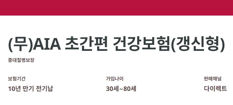 딱 하나만 묻는 AIA생명 초간편 건강보험 암 뇌혈관질환 급성심근경색증